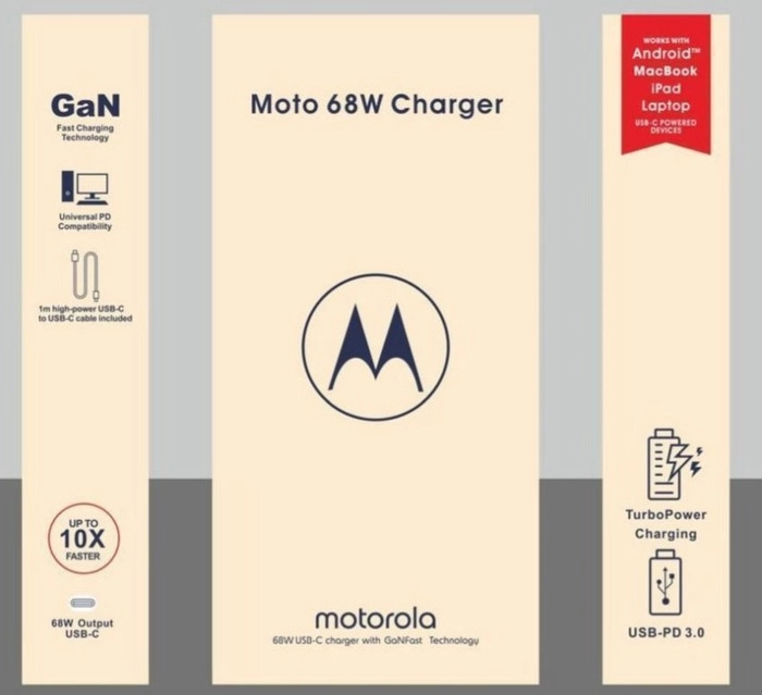 Super-fast charging — Delivers up to 68 W of USB-C Power Delivery, powering compatible phones, tablets, and even USB-C laptops quickly. It’s Motorola’s most powerful TurboPower charger yet.
